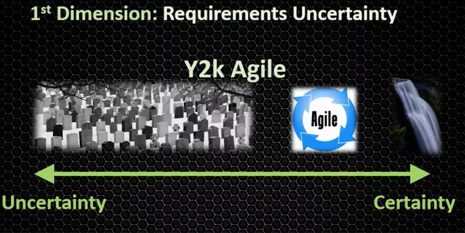 Model: Uncertainty of requirements defines whether to work waterfall, agile or beyond agile